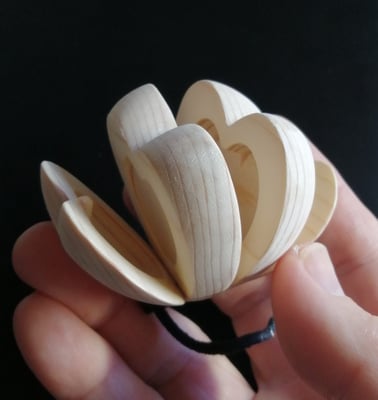 白木から削り出した木のカスタネット。