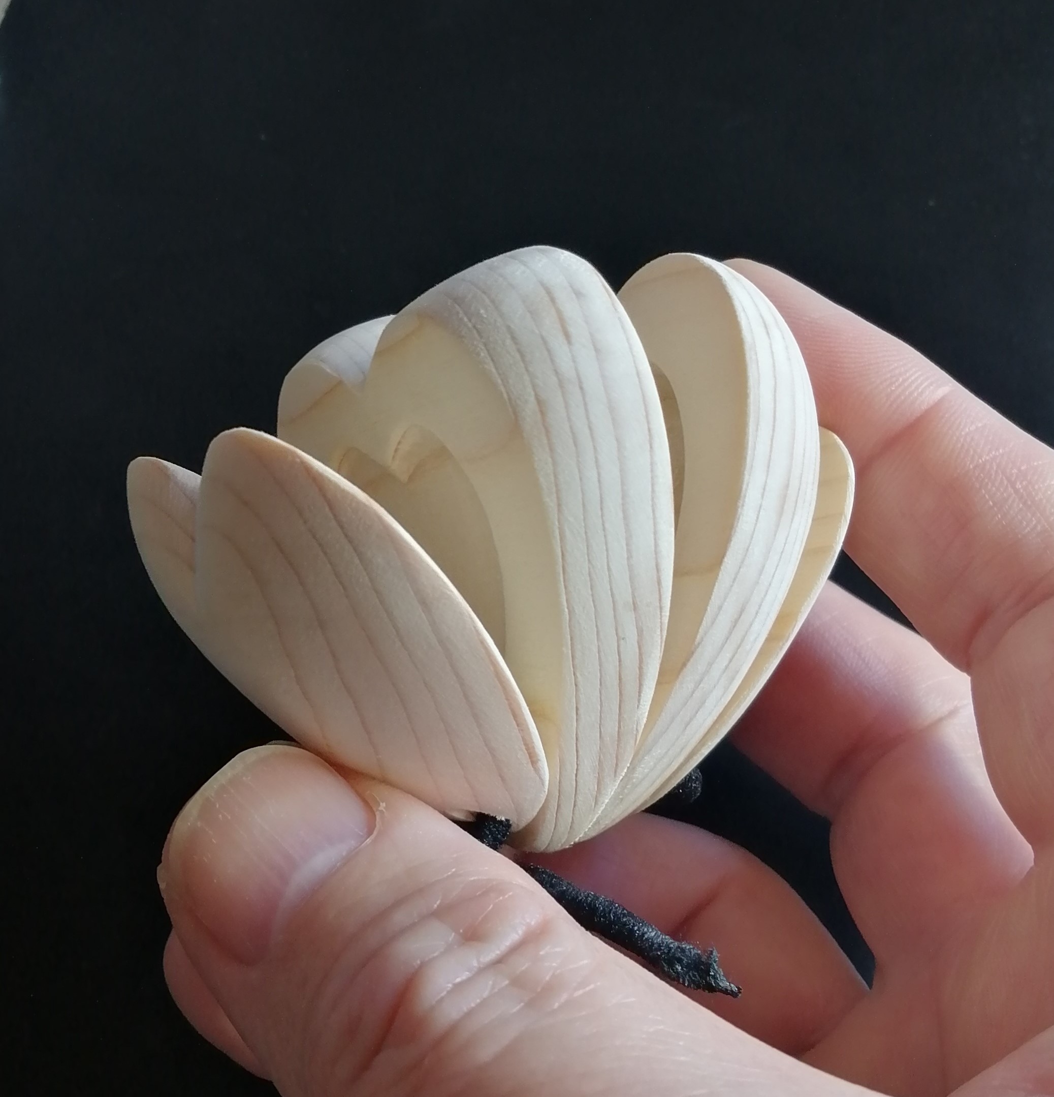 Wooden castanets carved from white wood.